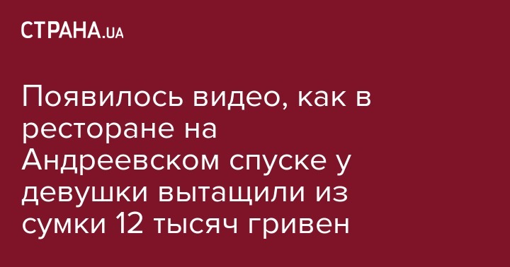 Появилось видео, как в ресторане на Андреевском спуске у девушки вытащили из сумки 12 тысяч гривен