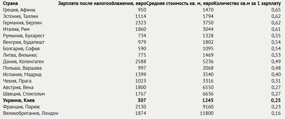 Несмотря на то, что стоимость квадратных метров в Киеве одна из самых дешевых в Европе, среднестатистический украинец может купить лишь 0,25 кв. м жилья. И это третье место с конца.