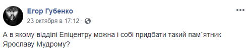 "А в каком отделе Эпицентра можно и себе приобрести такой памятник Ярославу Мудрому?" - спрашивал Егор Губенко.