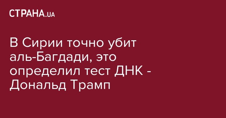 У США нет сомнений в том, что главарь террористической группировки ИГИЛ Абу Бакр аль-Багдади мертв, поскольку удалось проверить его ДНК. Об этом во время пресс-конференции в Белом доме заявил американский президент Дональд Трамп.