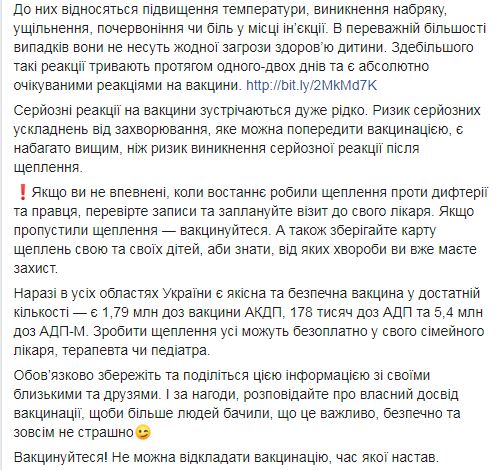 Супрун объяснила, что делать взрослым украинцам, которые не знают о прививках от дифтерии