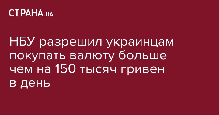 "Дневной лимит в 150 тыс. грн через кассу банка, финансового учреждения или в системах онлайн-банкинга отменен. Также прекращает действовать требование о предоставлении физическими лицами документов в банк, подтверждающих основания для проведения операций по покупке безналичной иностранной валюты", - говорится в сообщении.