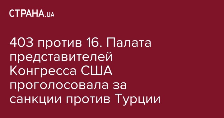 Вчера, 29 октября, Палата представителей Конгресса США приняла пакет санкций против Турции из-за ее вторжения в Сирию. Законопроект был принят подавляющим числом голосов - 403 против 16. Об этом сообщает The Hill