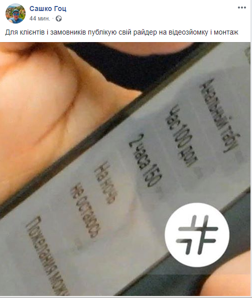 "Для клиентов и заказчиков публикую свой райдер на видеосъемку и монтаж", – пишет блогер Сашко Гоц.