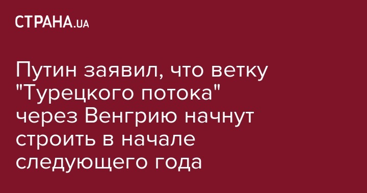Путин заявил, что ветку "Турецкого потока" через Венгрию начнут строить в начале следующего года