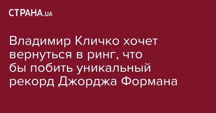 Владимир Кличко хочет вернуться в ринг, что бы побить уникальный рекорд Джорджа Формана