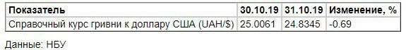 К полудню четверга, 31 октября, справочный курс гривни по отношению к доллару США на межбанковском валютном рынке Украины достиг 24,83 грн. за $1.