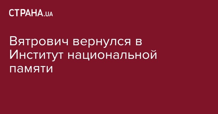 Бывший директор Института национальной памяти Владимир Вятрович вернулся на прежнее место работы в качестве спикера нового цикла "ИстФакт", который запускает учреждение. Об этом сообщает сайт организации.