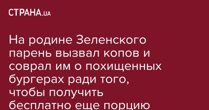 На родине Зеленского парень вызвал копов и соврал им о похищенных бургерах ради того, чтобы получить бесплатно еще порцию