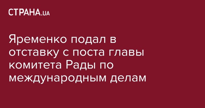 При этом Яременко оговорился, что передаст заявление председателю Верховной Рады только если решение о его отставке примет фракция "Слуги народа", рекомендовавшая его на должность главы комитета.