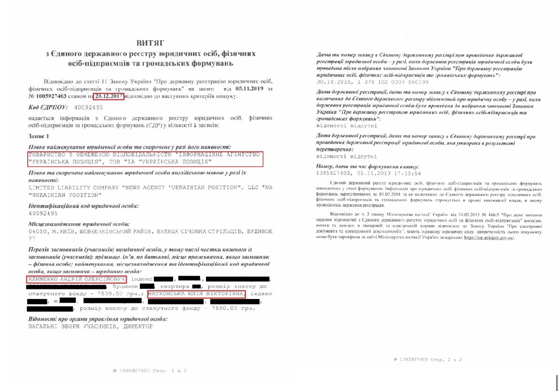 «Я никогда не руководил никакой общественной организацией «Украинский выбор. В то же время замечу, что Татьяна или не понимает, или умышленно искажает информацию из базы данных «Clarity Project», поскольку предоставленная ею информация не касается сведений о руководителе «Украинская выбора» и является откровенным фейком.
