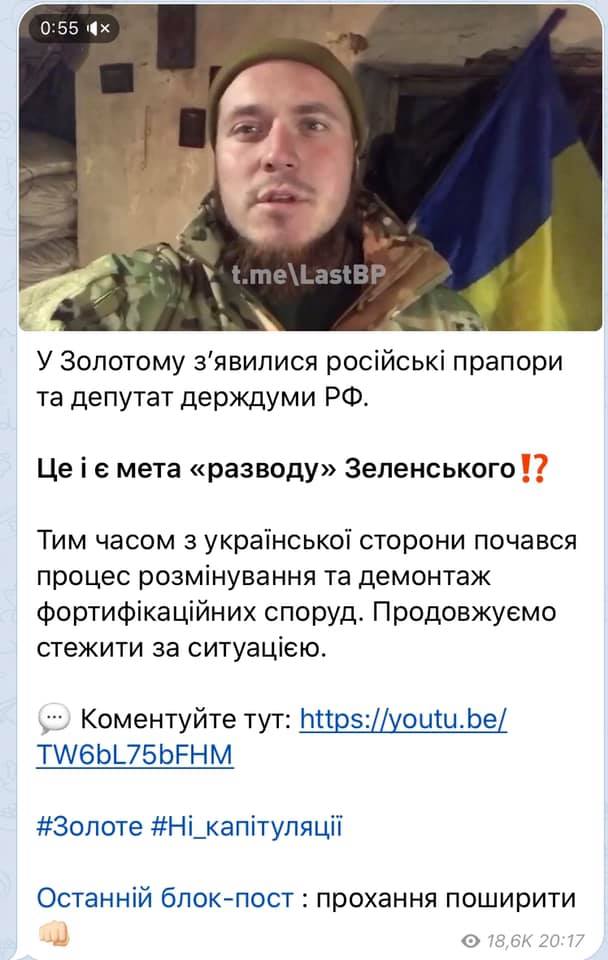Также мы писали о том, что в Золотое, где развели войска, завезли пять отрядов украинских саперов.