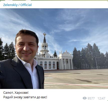 "Салют, Харьков! Рад снова заглянуть к вам", - написал Владимир Зеленский.
