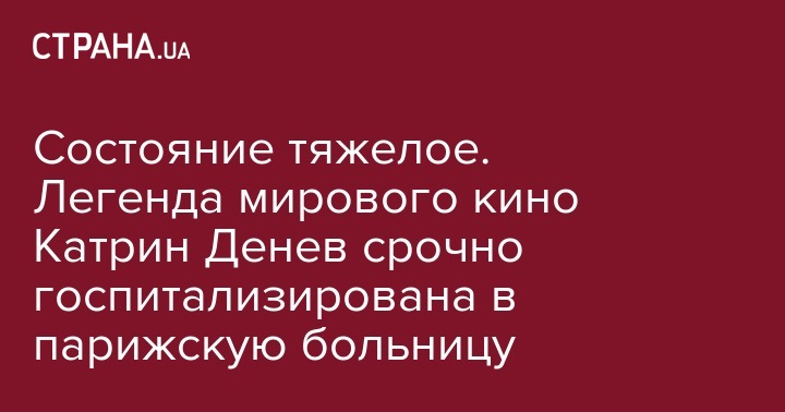 Состояние тяжелое. Легенда мирового кино Катрин Денев срочно госпитализирована в парижскую больницу