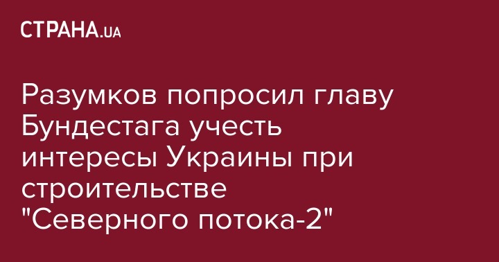 В пятницу, 8 ноября, председатель парламента Украины Дмитрий Разумков провел телефонный разговор с председателем Бундестага Вольфгангом Шойбле. Они обсудили учет интересов Украины при строительстве газопровода "Северный поток-2".