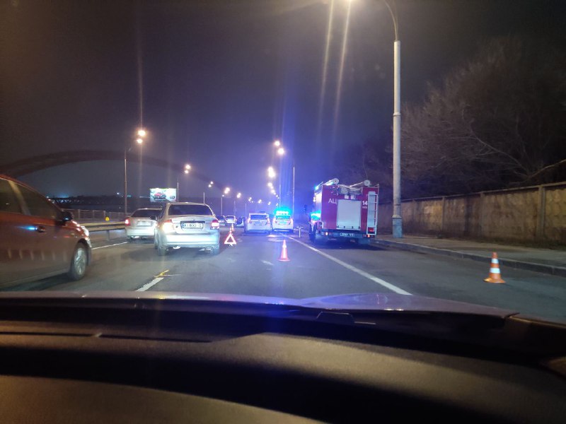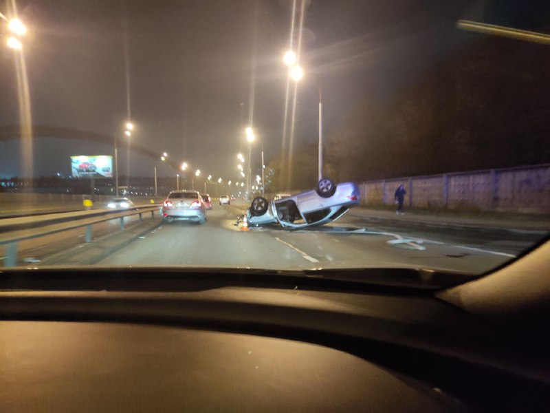 В Киеве на улице Набережно-Рыбальская вечером, 10 ноября, образовалась пробка из-за того, что одна из машин на улице перевернулась и загорелась. Об этом сообщает корреспондент "Страны".