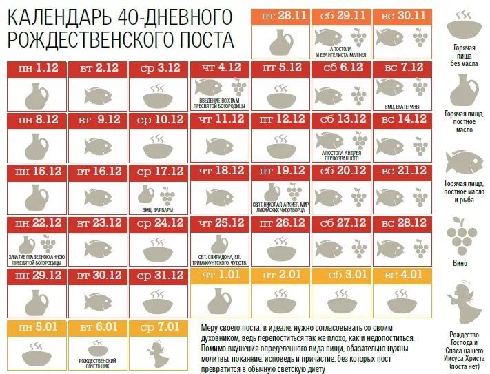 С календарем питания в Рождественский пост по дням, меню и рецептами можно ознакомиться здесь