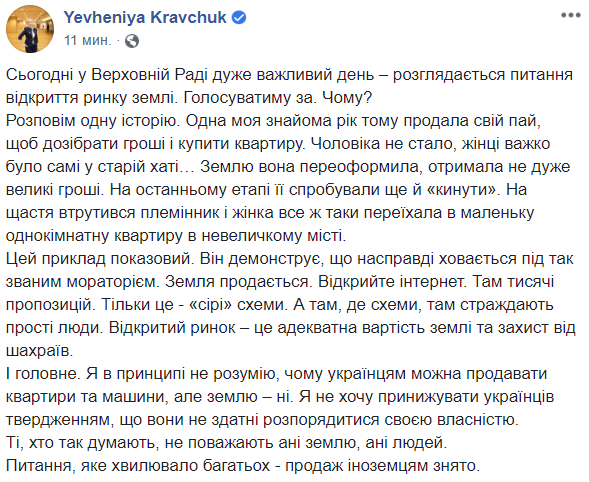9:51 "Слуги народа" в соцсетях дружно призывают голосовать за законопроект по земле. Евгений Кравчук заявляет, что "вопрос о продаже иностранцам снят".