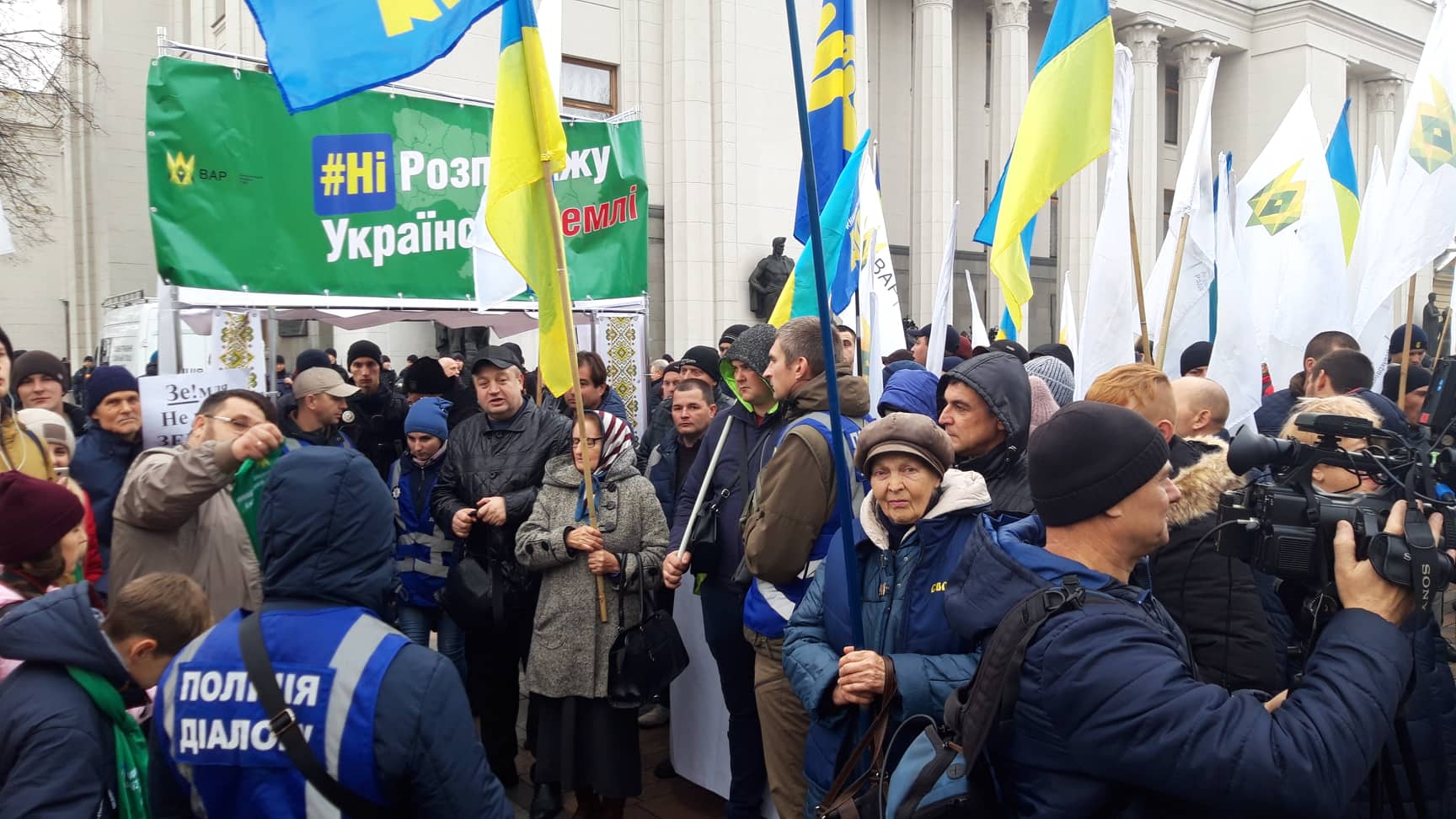 "Мы не блокируем проход, мы проводим разъяснительную работу с депутатами, чтобы они не голосовали на правительственный законопроект и тот законопроект который подал Аграрный комитет. Мы обращаемся к ним, чтобы они не продавали Украину. Правительственный законопроект фактически предусматривает продажу Украинской земли иностранцам".
