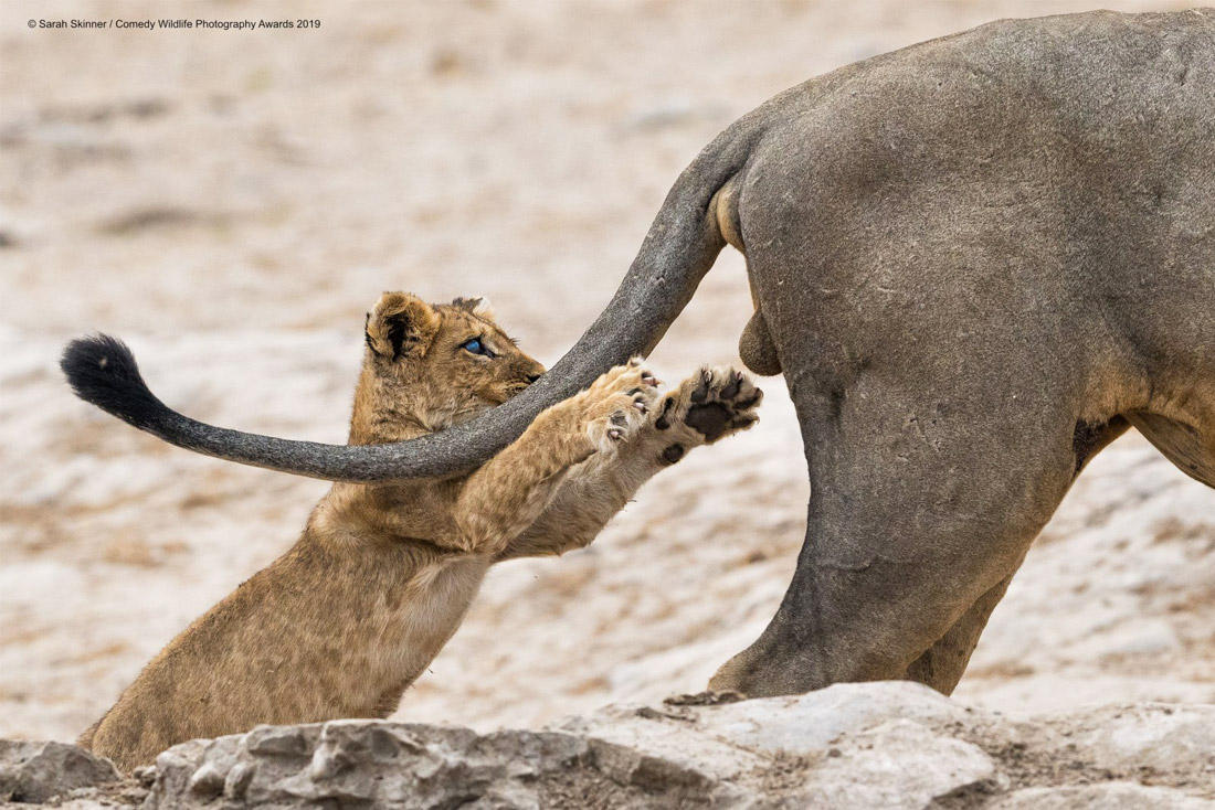 Женщина запечатлела курьезный момент, когда львенок пытается лапами ухватить "достоинство" взрослого льва. Скиннер отметила, что рада и горда тем, что ее снимок получил на конкурсе первое место.