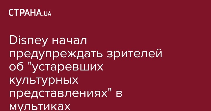 Стриминговый сервис Disney+ перед просмотром некоторых старых мультфильмов от Disney теперь показывает зрителям предупреждение о том, что в мультфильмах могут быть изображены устаревшие культурные представления ("it may contain outdated cultural depictions"). Об этом сообщает Афиша.Daily.