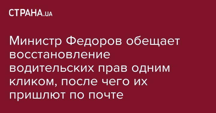 Вице-премьер по вопросам цифровой трансформации Михаил Федоров заявил, что его команда работает над возможностью восстановления водительских прав через мобильное приложение. Об этом он написал на своей странице в соцсети.