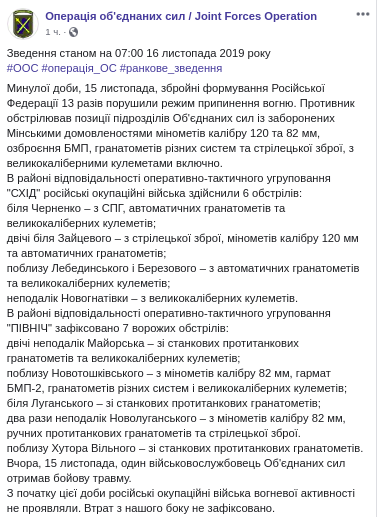Скриншот: Facebook/Операція об'єднаних сил / Joint Forces Operation