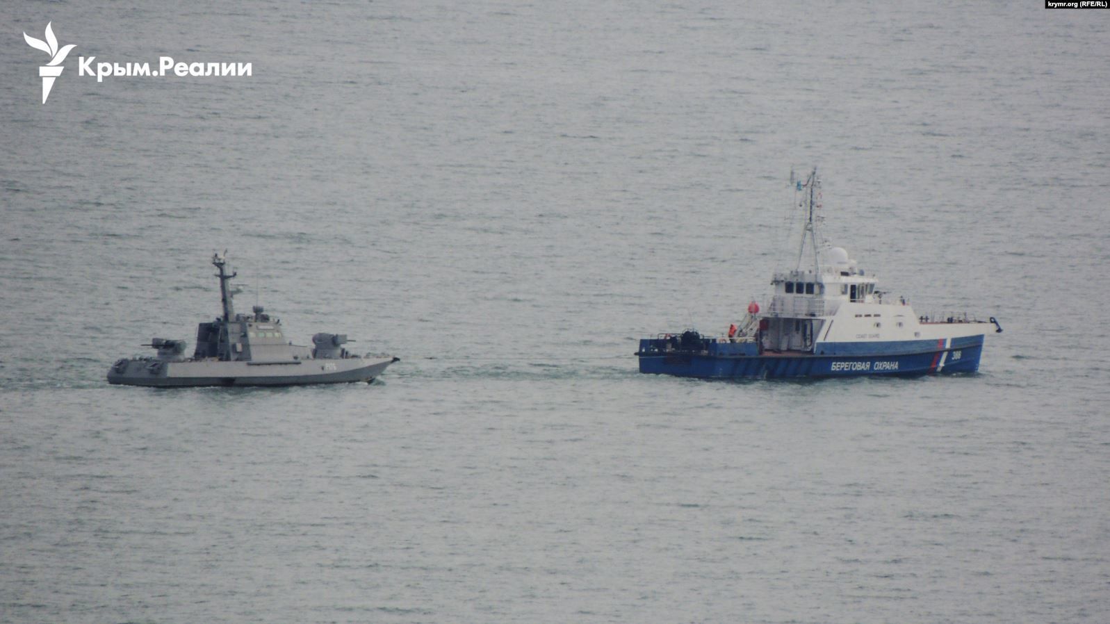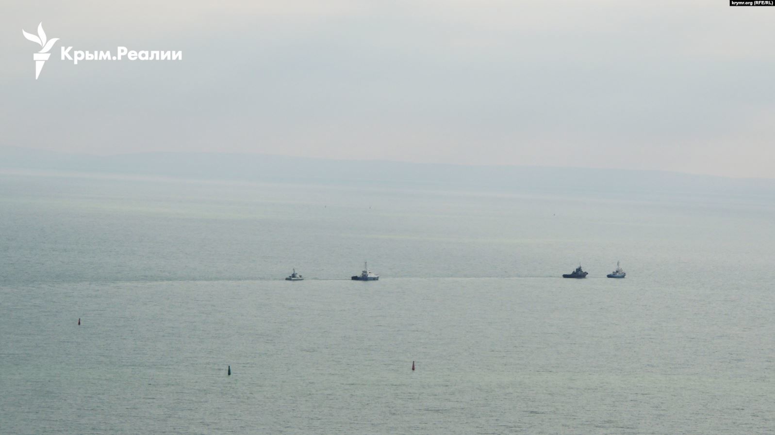 17 ноября, из акватории "Генмола" в Керчи в Крыму в сопровождении российской береговой охраны вывели три украинских военных суда, захваченные год назад. Речь идет о катерах "Бердянск" и "Никополь", а также буксире "Яны Капу". Об этом пишет "Крым.Реалии".