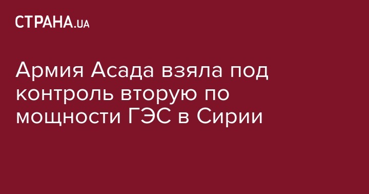 Армия Асада взяла под контроль вторую по мощности ГЭС в Сирии