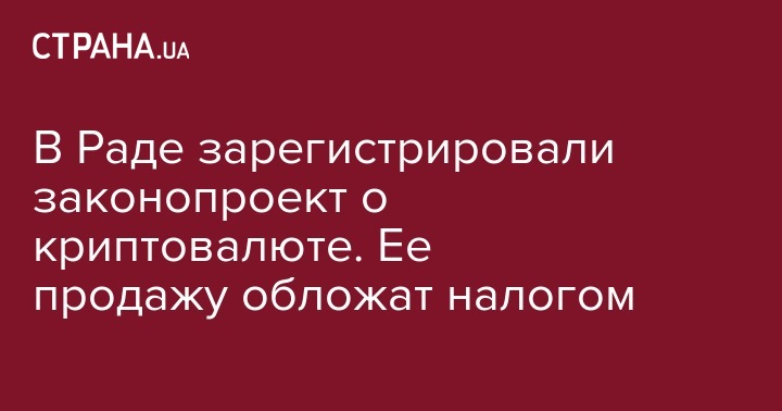 В Раде зарегистрировали законопроект о криптовалюте. Ее продажу обложат налогом
