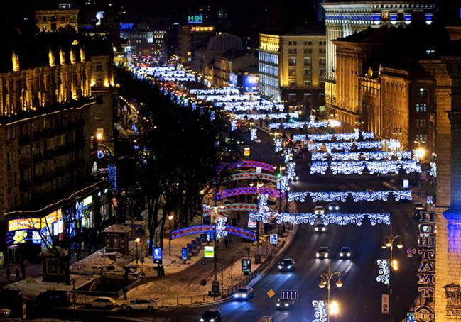 Также сообщается, что для украшения улицы Крещатик в центре Киева было использовано более 3 тысяч метров гирлянд и 300 световых приборов, которые установили на деревьях и административных зданиях. Это - Национальная Филармония, Консерватория, Киевская Городская Государственная Администрация, Главпочтамт, Укоопсоюз (новогодние мотивы, гирлянды), а также другие улицы Киева: