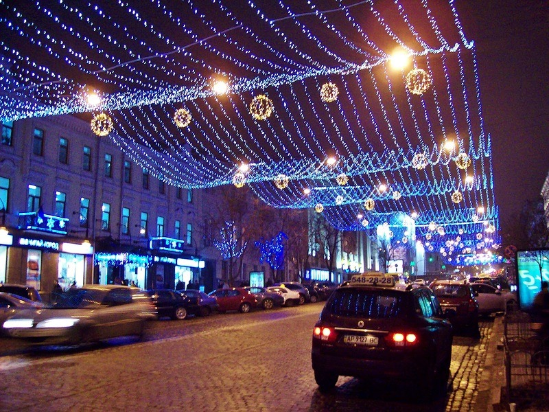 - ул. Б. Хмельницкого — иллюминация на тросовых растяжках над проезжей частью (гирлянды и шары);