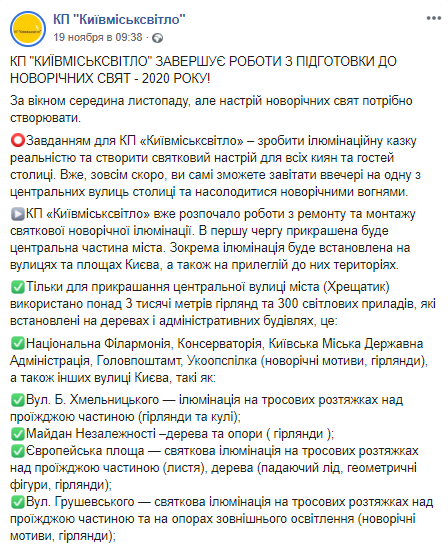 Скриншот: Facebook/КП "Київміськсвітло"