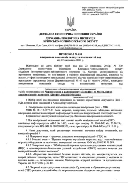 Содержание нефтепродуктов в море вблизи Одессы, где сел на мель катер "Делфи", в 53 раза превышает норму. Об этом сообщил и.о. председателя Госэкоинспекции Украины Егор Фирсов на своей странице в Facebook.