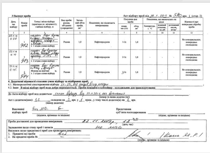 Госинспекторы вместе с представителями АМПУ проводят повторное обследование места аварийного происшествия и повторный отбор проб в связи с появлением пятен маслянистого состава.