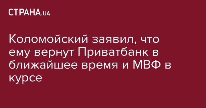Коломойский заявил, что ему вернут Приватбанк в ближайшее время и МВФ в курсе