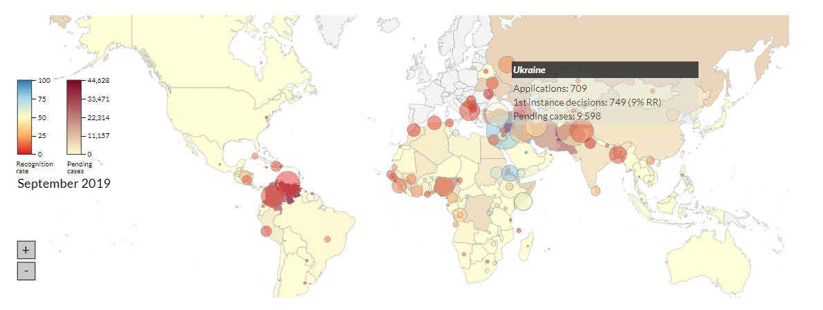 Всего в период с января по сентябрь 2019 миграционные службы ЕС+ получили более 500 тысяч запросов о предоставлении убежища, что на 10% больше, чем за аналогичный период в 2018 году. От украинцев поступило 709 заявок.