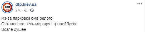 Сегодня, 23 ноября, в Голосеевском районе города Киева, возле ТРЦ Ocean Plaza, водитель белого BMW остановил транспортное средство на проезжей части, заблокировав движение общественного транспорта. Об этом сообщается на странице dtp.kiev.ua в Facebook.