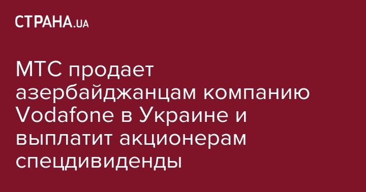 ПАО "МТС" продает свой телекоммуникационный бизнес в Украине (работает под брендом Vodafone) азербайджанскому оператору. По итогам сделки акционеры российской компании получат спецдивиденды. Об этом сообщает "Интерфакс", ссылаясь на сообщение МТС.