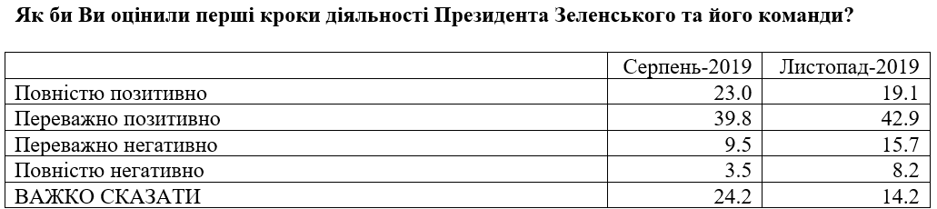 Это говорит о том, что романтический период между новой властью и украинцами в общем-то заканчивается. Хотя до показателей годичной давности времен Порошенко, когда одобряли курс всего 11% - новой власти, конечно, пока далеко.
