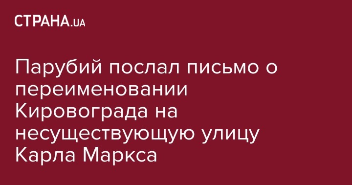 Парубий послал письмо о переименовании Кировограда на несуществующую улицу Карла Маркса