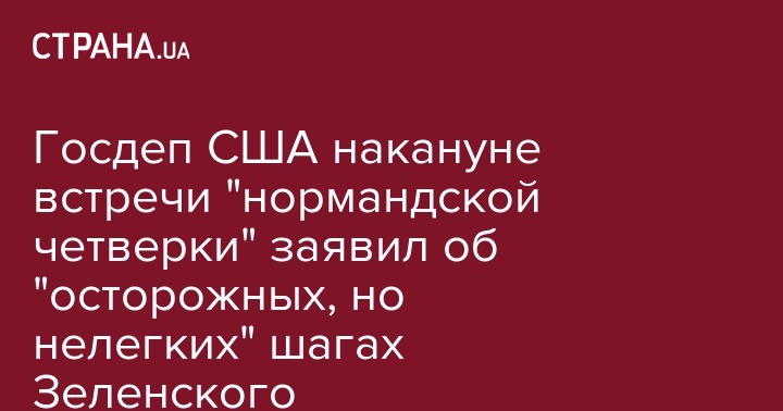 Госдеп США накануне встречи "нормандской четверки" заявил об "осторожных, но нелегких" шагах Зеленского