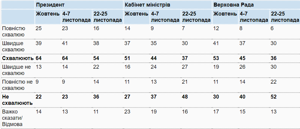 Об этом идет речь в исследовании Киевского международного института социологии, которое охватывает три осенних месяца без последих пяти дней ноября.