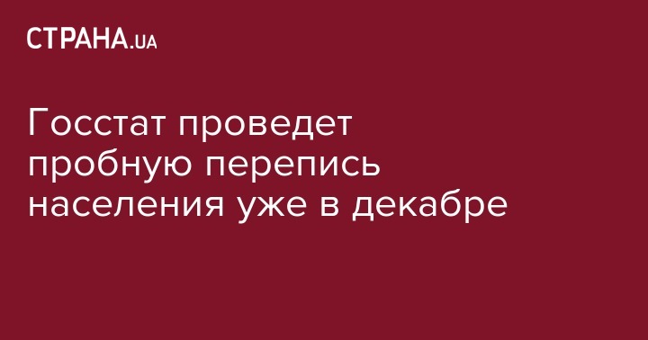 Государственная служба статистики анонсировала подготовительный этап Всеукраинской переписи населения 2020 года - пробную перепись, которая пройдет с 1 по 26 декабря 2019 года. Об этом говорится на сайте ведомства.