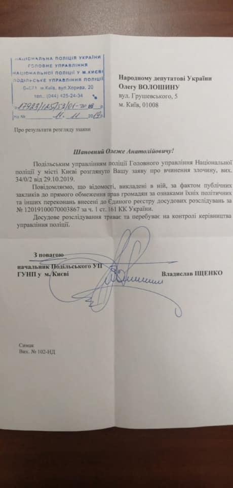 Между тем, по его словам, Нацполиция уже начала досудебное расследование по этому делу.