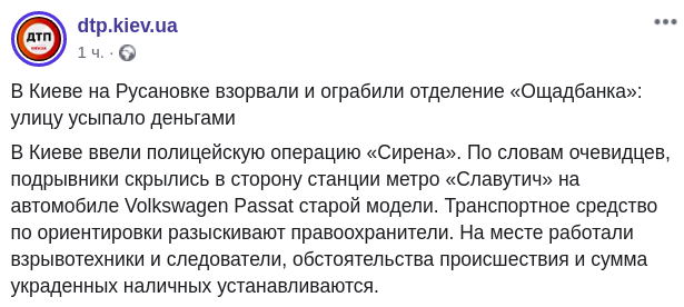 В ночь с пятницы на субботу, 30 ноября, неизвестные взорвали и ограбили отделение "Ощадбанка", которое находится Русановке в Киеве. Об этом говорится в группе dtp.kiev.ua на Facebook.