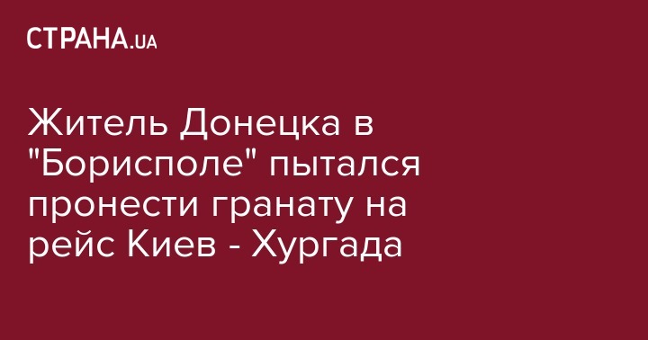 В аэропорту Борисполь служба безопасности изъяла гранату из багажа жителя Донецка. Он летел до Хургады (Египет). Об этом сообщает полиция Киевской области в субботу, 30 ноября.