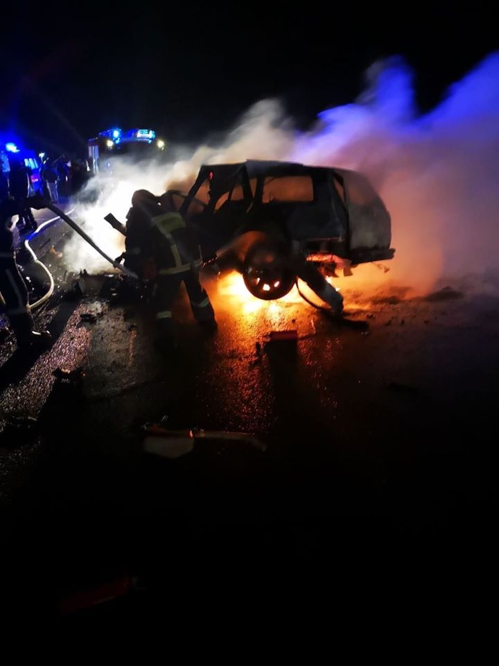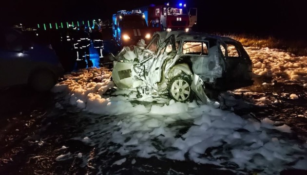 Под Черновцами после столкновения легковушки и бусика вспыхнул пожар, три человека погибли. Фото