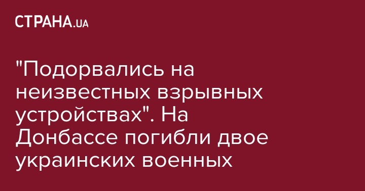 В зоне проведения боевых действий во время выполнения боевого задания погибли двое украинских военных. Они подорвались на взрывных устройствах. Об этом сообщает пресс-центр штаба операции Объединенных сил на своей странице в Facebook.