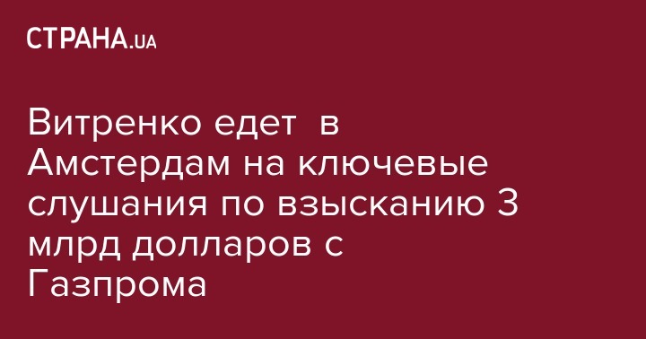 "Уже завтра я направляюсь в Амстердам, где послезавтра должны состояться ключевые судебные слушания по взысканию с Газпрома около 3 миллиардов долларов. Если они пройдут успешно, мы сможем начать получать средства уже примерно с апреля, то есть за считанные месяцы", - написал Витренко.
